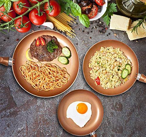 ✔️Fuerte recubrimiento cerámico con infusión de cobre crea una superficie de cocción antiadherente y resistente a los arañazos.